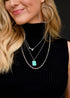 24" Layered Silver Chain Necklace with Arrows and Turquoise Bar Accents