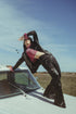 These pants are perfect for dressed-up western social occasions! Pair them with the Cowboy Tuxedo Blazer for a bold and sophisticated western-inspired style. Crafted in sleek black satin, these flares feature a zipper closure, bold western arrow pockets, and a flattering mid-rise fit with just the right amount of stretch. True to size and ready for wherever the night takes you.