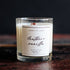 Experience the warm blend of leather and vanilla with notes of sage, citrus, vetiver, oak, musk, cedarwood, cypress, and moss. This 8 oz candle is hand-poured in small batches, made from a luxurious all-natural coconut and soy wax blend, and crafted with sustainably sourced wood wicks for a soft, crackling flame. Encased in a reusable whiskey glass, it measures 3.125 inches in diameter and 3.5 inches in height, offering up to 60 hours of burn time. Phthalate-free fragrance oils and zero dyes create a clean, rich aroma, poured with care and love.