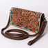 The Wildflower Mesa Crossbody captures the spirit of Western craftsmanship with richly detailed hand-tooled leather. The front flap showcases an intricate floral scroll pattern, creating depth and texture that highlights the artistry of traditional leather tooling.