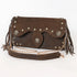 Channel rugged Western beauty with the Ranch Star Crossbody — a statement piece that captures the spirit of the frontier with a touch of refined edge. Handcrafted from rich brown suede, it features antique silver conchos, rustic studs, and a distinctively shaped flap that brings bold cowgirl energy to every outfit. The cascading side fringe adds movement and personality, while the suede-and-chain strap offers versatile styling as a clutch or crossbody.