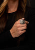 Introducing the Larmaie Concho Ring, an adjustable two-tone burst concho ring with turquoise accent. This handcrafted ring features a distinctive burst concho design in two-tone colors, creating a visually appealing contrast. The turquoise accent adds a pop of color and cultural flair, making it a versatile accessory for any occasion. With its adjustable design, this ring offers both comfort and style, making it a chic and easy-to-wear addition to your jewelry collection.
