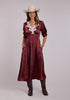 The Stetson Prairie Heirloom Dress offers a romantic take on Western occasion dressing, defined by rich color and delicate detail. Cut from smooth wine satin, the fabric reflects light softly while maintaining an elegant, fluid drape.