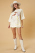 Introducing the "On the Run" Horse Embroidery Tee: A chic addition to your casual wardrobe. Made from 100% cotton, this tee features short sleeves, a round neck, and an oversize fit for comfort. Stand out with the multicolor yarn horse embroidery.