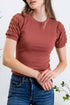 The Dusty Road Top features a round neckline, a stylish popcorn sleeve design with a fitted sleeve band. The solid knit fabric, made from 93% polyester and 7% spandex, ensures a comfortable and stretchy fit. The contrast fabric, composed of 96% polyester and 4% spandex, adds a touch of texture. Not lined, this top offers a sleek, lightweight feel, combining modern style with casual elegance.
