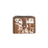 Measures approximately 5.25" wide by 3.75" high. Crafted from genuine hair-on cowhide and leather.