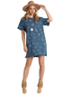 Short Sleeve Round Neck Graphic Dress, Denim Blue