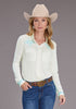 The Tularosa Trails Blouse by Stetson blends modern comfort with timeless Western character. Made from a soft cream modal-spandex jersey knit, this blouse is designed to move with you while maintaining an elevated silhouette. It features signature Stetson details like single-point front and back yokes, chest patch pockets with flaps, and a full button placket. Turquoise-inspired embroidery at the yoke, cuffs, and collar adds a subtle Southwestern edge. With its refined fit and understated charm, this piece embodies the spirit of the West—true to the Stetson name.