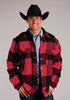 Stetson wool blend plaid coat. Fully lined with quilted nylon spread collar. Straight back yoke. Square mitered chest pockets and flaps. Snap front. Side seam pockets. Snap adjstable cuff. 50% Wool 50% Polyester